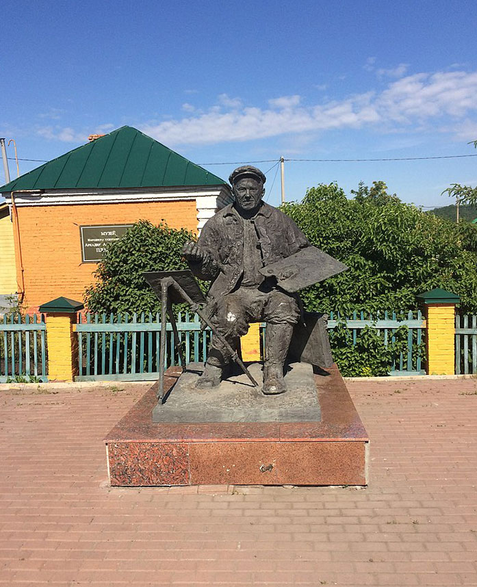 Пластов на памятнике непарадный – в фуфайке и кирзовых сапогах, в руках – палитра и кисти, с которыми он вышел на этюды.
